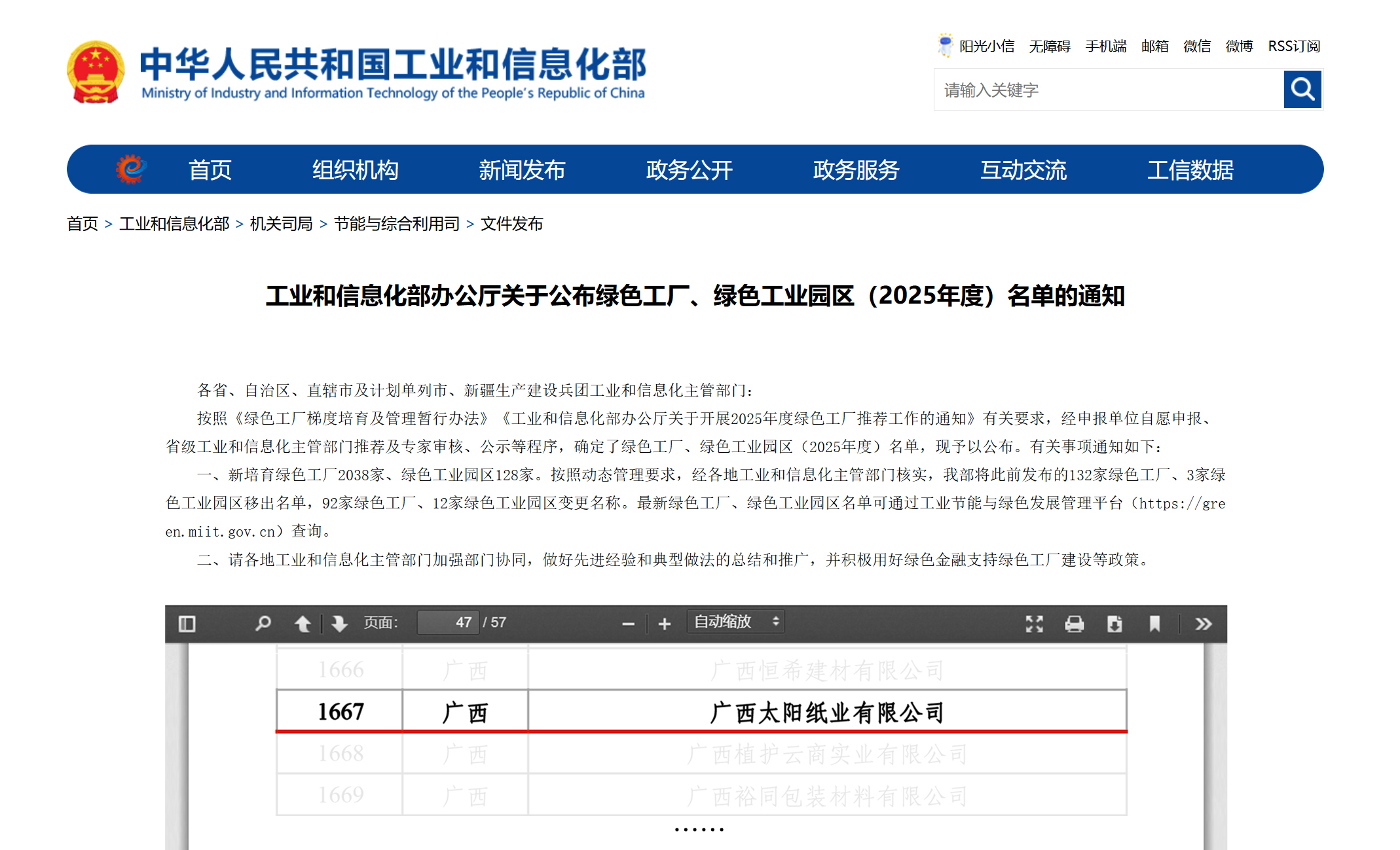 喜报!广西星空体育有限公司获评国家级绿色工厂